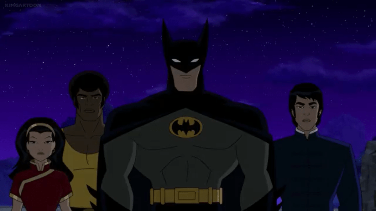 From there, we transition into a flashback as a younger Bruce has scaled some Himalayan mountains before arriving at a massive and ancient set of doors. He then uses one of the chiming door knockers, but doesn’t get a response. He even calls out for anyone inside, but is only greeted by utter silence. Just as he begins to angrily leave, he suddenly hears the door become unlocked as he makes his way inside where he’s met upon by O-Sensei (voiced by James Hong). Shortly afterwards, he guides Bruce into the main area known as Nanda Parbat. He then tells Wayne that he’ll be “the sixth” student before he presents his fellow sparring mates.